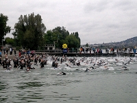 Zu zweit starteten wir am Zürich Triathlon. Obwohl der Zürich See für eine 1,5 km Strecke groß genug sein sollte war es nie wirklich möglich