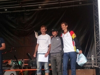 aber nicht so bei diesem Wettkampf: Uwe wird als Gesamt-Fünfter und Altersklassen-Dritter geehrt und erhielt sogar Preisgeld. Selbst Brigitte erhält einen Dank vom Sieger