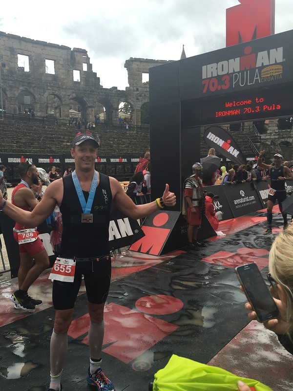 und nahm nur drei Wochen später beim Ironman 70.3 Pula/Kroatien teil. Die Strecke in der altrömischen Stadt, mit Ziel im Amphitheater,