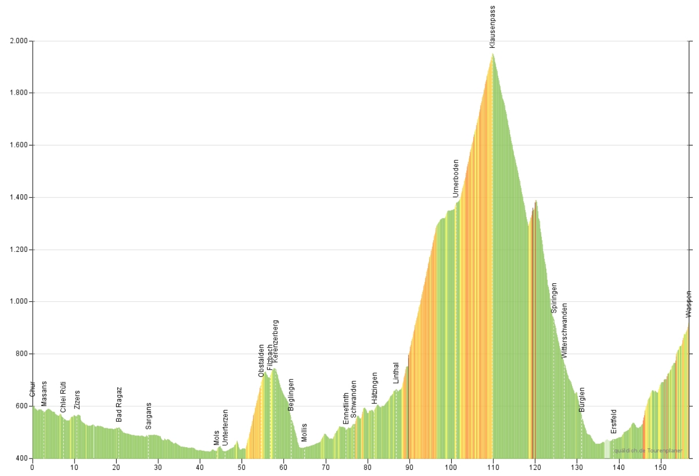 156,6 km, 2.844 Hm, Chur - Bad Ragaz - Kerenzerberg - Mollis - Klausenpass - Wassen