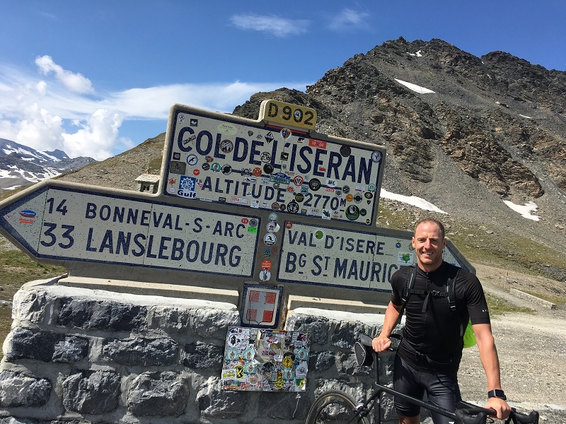 Der gestrige Tag hatte seine Spuren hinterlassen. Etwas müde machte ich mich bei leicht bewölktem Wetter erst um 10 Uhr auf den Weg in Richtung La Thuile. Gleich von Anfang an ging es stetig leicht bergauf. Durch die interessante Bergwelt, die sich mir bot, war das aber kaum zu spüren. Nach circa 30 km hatte ich dann den mit 4810 m hohen Mont Blanc vor Gesicht. Ein gewaltiger Anblick. Leider hatte sich die Spitze hinter den Wolken versteckt. Eine kurze Pause für ein Foto war aber trotzdem angebracht. Danach wurde es steiler. Es ging rauf zum Col du Petit St. Bernard. Anders als sein großer Bruder vom Vortag war der Pass jedoch sehr angenehm zu fahren. Kaum Verkehr und keine Autobahnen. Nach 4 Stunden kam ich oben an und freute mich, dass es nach den 55 km bergauf jetzt endlich bergab ging. Während der Abfahrt nach Ste. Foy-Tarentaise begann es dann zu regnen. Auch die Müdigkeit machte sich mehr und mehr bemerkbar. Ich musste unbedingt etwas ausruhen. Bei einer kurzen Cafe/Kuchen Pause entschied ich mich dazu, lediglich noch die ca. 900 Hm bis nach Val d'Isere zu fahren. Der bevorstehende Col de I'Iseran war heute nicht mehr drin. In dem sehr schönen Hotel "Avancher" ließ ich den Tag mit einem grandiosen Abendessen ausklingen und hatte sogar noch etwas Zeit den exklusiven Skiort etwas anzuschauen.