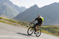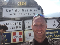 Völlig ausgeruht radelte ich an diesem Morgen los. Die Vorfreude war groß, denn ich hatte den mit 2770 m höchsten Pass der Alpen vor mir. Da Val d'Isere bereits auf 1785 m liegt war der Weg zum Col de I'Iseran relativ human. Bei sonnigen Wetter kam ich schon nach 60 Minuten oben an und konnte die Aussicht genießen. Einfach super! Die folgende 15 km lange steile Abfahrt hatte es dann in sich. Geblendet von der schönen Bergwelt unterschätzte ich eine scharfe Kurve und kam bei blockierendem Hinterrad nur haarscharf mit dem Schrecken davon. Das Herz viel mir in die Hose. Glück gehabt! Mit etwas mehr Konzentration ging es weiter. Die anschließenden 60 km waren leicht abfallenden und dadurch sehr einfach und gemütlich zu fahren. Lediglich der zunehmend stärker werdende Wind, der einige Wolken mit sich brachte, trübte meine Stimmung etwas. Erwartungsgemäß begann es noch vor der Auffahrt zum Col du Telegraphe etwas zu regnen. Kein Grund nicht weiterzufahren! Als ich mich nach ca. 400 Hm in mitten einem heftigen Gewitter wieder fand bereute ich diese Entscheidung jedoch. Blitz und Donner gingen fast einher und weit und breit war keine Möglichkeit zum Unterstellen zu sehen. Mit bangem Gefühl brachte ich den Pass so schnell als möglich hinter mich. Glücklich in Valloire angekommen war keine Besserung in Sicht. Eigentlich sollte es an diesem Tag bis nach Briancon gehen, der anstehende Col du Galibier war bei diesem Wetter aber schlichtweg zu gefährlich. In Valloire war somit Schluss für diesen Tag.