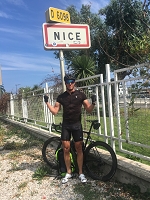 Mit etwas schweren Beinen vom Vortag ging es an diesem Morgen auf die Zieletappe. Das Wetter war wieder perfekt, so dass die übrigen 145 km bis Nizza in trockenen Tüchern waren. Wehmütig machte ich mich auf den Weg in Richtung des letzten großen Highlights meiner Alpendurchquerung, den mit 2715 m hohen vierthöchsten Alpenpass Col de la Bonette. Kurz am Rande: Der Col de la Bonette wir oft als höchster Pass der Alpen gehandelt. Sogar lokale Tourismusverbände verleihen ihm diesen Titel. Tatsächlich ist es aber so, dass man die Höhe von 2802 m nur durch eine Zusatzrunde zum Cime de la Bonette erreicht. Der eigentliche Passübergang, also der niedrigste Übergang über die Wasserscheide, liegt darunter. Nichtsdestotrotz war der Pass ein wahrer Genuss. Die Landschaft war wunderschön und der Blick auf die Seealpen und den Mercantour-Nationalpark atemberaubend. Natürlich musste ich auch die Zusatzrunde zum Cime de la Bonette machen. Oben angekommen hatte ich ein breites Grinsen im Gesicht, denn zwischen mir und Nizza stand jetzt nur noch eine 110 km lange Abfahrt. Ich habe nicht lange gewartet, ich wollte unbedingt ins Meer springen. Nach einer Abfahrt in Rennmanier kam dann der große Moment - das Ortsschild NICE - geschafft.