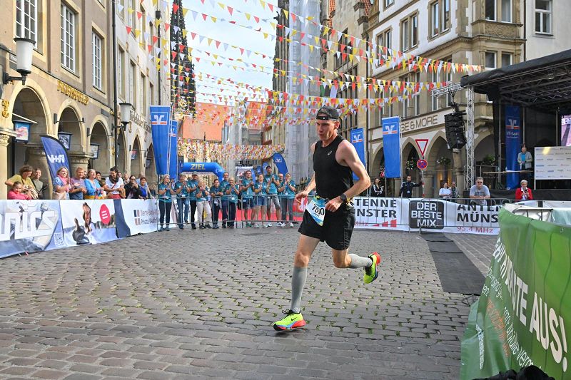 Am 08.09.24 nahm Jonas am 10. Münster Marathon teil. Bei angenehmen 19 Grad ging es auf die recht kurvige Strecke. Nach dem Start sortierte sich das Feld extrem schnell. Die Profis voraus und danach die ambitionierte RunningCrew Münster. Mit seiner Zielzeit von 2:48 h blieb Jonas an der Gruppe von 10 Läufern dran, wusste jedoch, dass die Zielzeit der Gruppe von 2:42h unantastbar für ihn war. Nach Kopfsteinpflasterpassagen und vorbei an den wichtigsten Sehenswürdigkeiten der Stadt Münster ging es auf das sehr ländliche Münsterland.