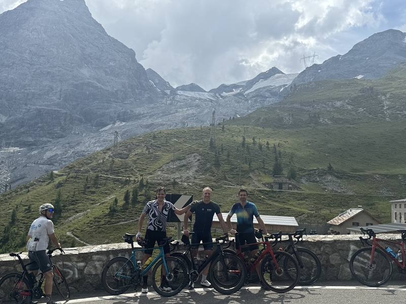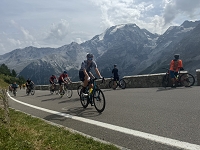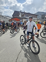 Samstag: Bikeday am Stilfser Joch Der Samstag stand ganz im Zeichen des legendären Stilfser Jochs. Bei bestem Wetter nahmen wir am sogenannten "Bikeday" teil, einem besonderen Event, bei dem die Passstraße für Autos/Motorräder gesperrt und nur für Radfahrer geöffnet war. Die Strecke führte uns über rund 80 Kilometer und verlangte uns mit ihren 2000 Höhenmetern einiges ab. Der Aufstieg zum Stilfser Joch, einem der bekanntesten Pässe der Alpen, bot spektakuläre Ausblicke und eine eindrucksvolle Serpentinenstraße. Die Anstrengung wurde durch die atemberaubende Aussicht auf die umliegenden Berge mehr als belohnt.